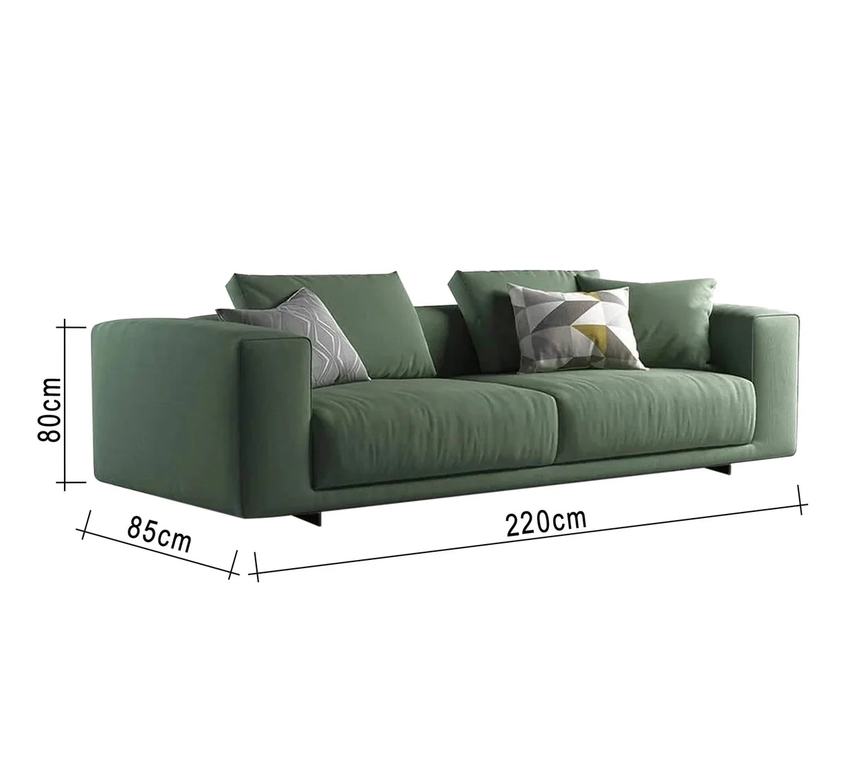 الطول 200 سم – العمق 85 سم – الارتفاع 75 سم.